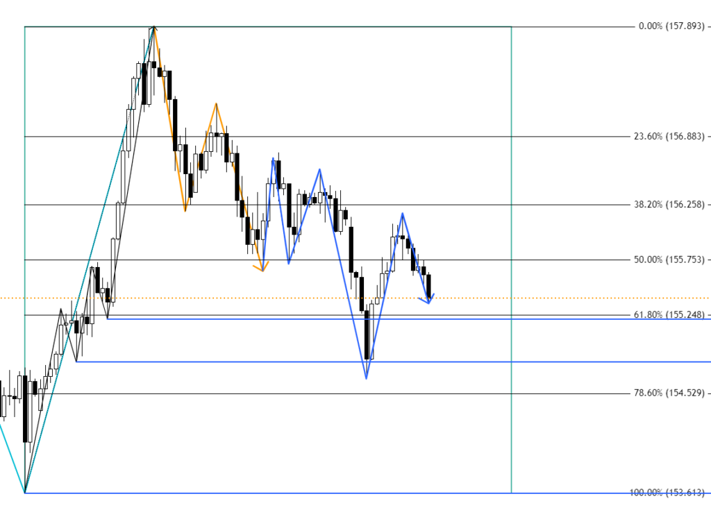 ドル円4時間足とゴールド日足の環境認識です。フィボナッチリトレースメントを使う意味を身近な例を使って解説しました。