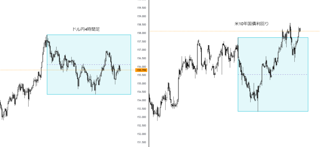 米10年債利回りは、ドル円下落前の水準に上昇しているが、ドル円は回復していない=ドルが買われていない?円が強い?
