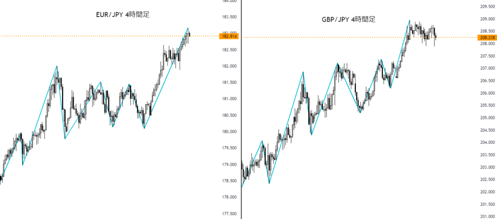 ドル円環境認識です。4時間足調整波が上昇トレンドに転換?上昇ダウ確定を待っています。