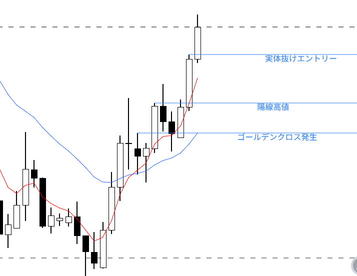 ゴールデンクロスやデッドクロスが発生したロウソク足を基準にダウ確定したらエントリーします