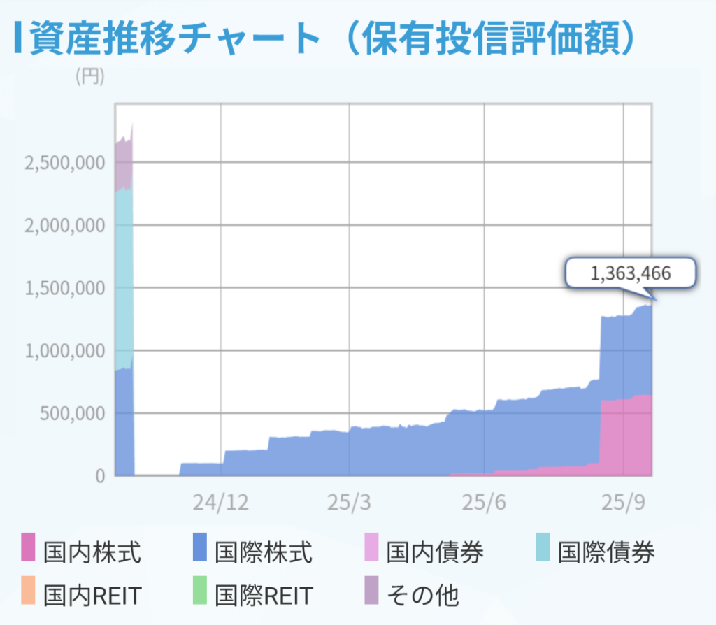株式多めですが、債券やリート(不動産)、ゴールドにも分散しており、ライフステージに合わせて資産配分を変えられるようにしています。