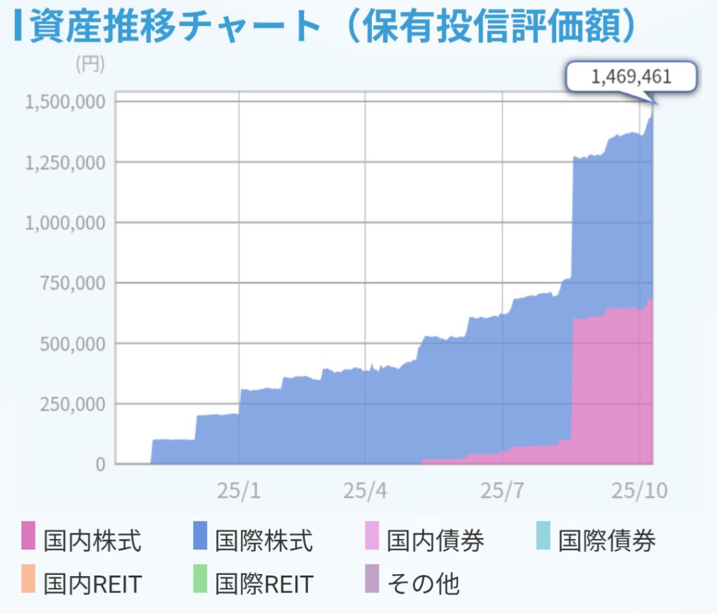 株式多めですが、債券やリート(不動産)、ゴールドにも分散しており、ライフステージに合わせて資産配分を変えられるようにしています。