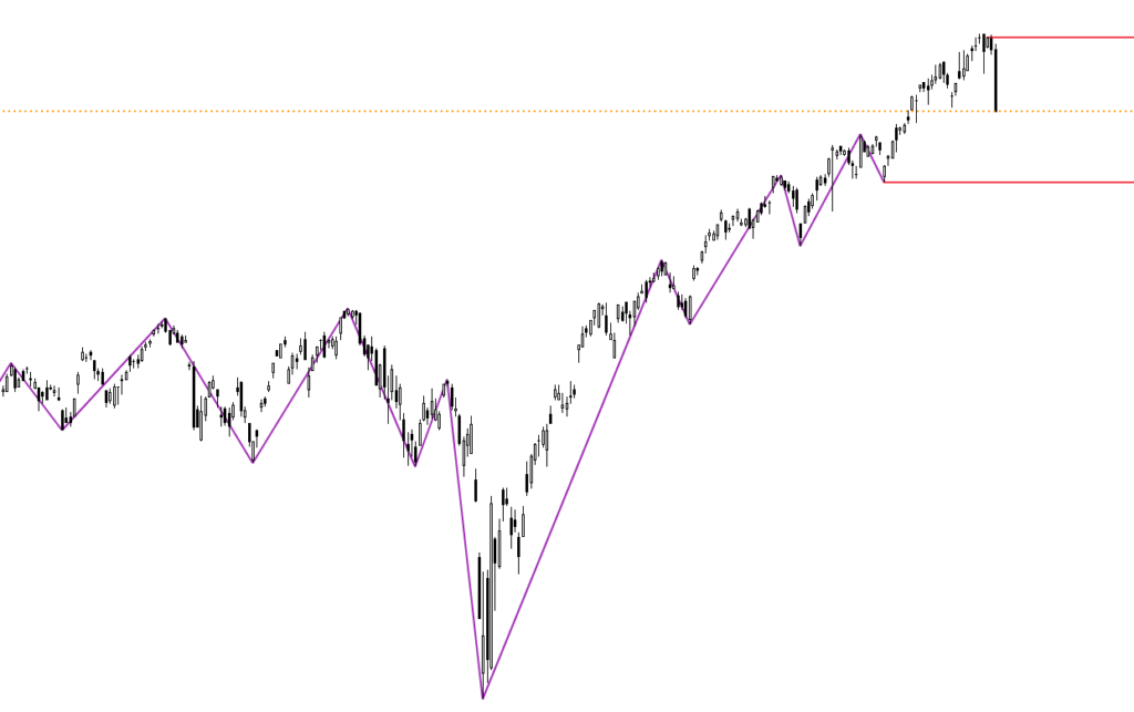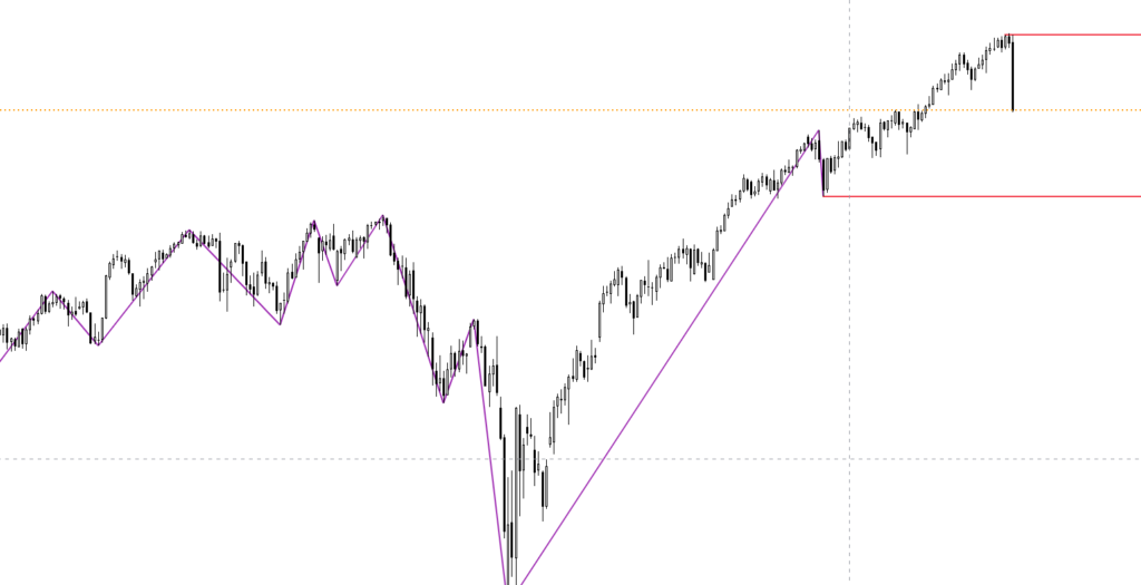 今週もS&P500は高値を更新しましたが、金曜日には非常に大きな陰線が出現。このサイズ感は久しぶりで、チャートを見て思わず「おぉ…」と声が出ました🤔