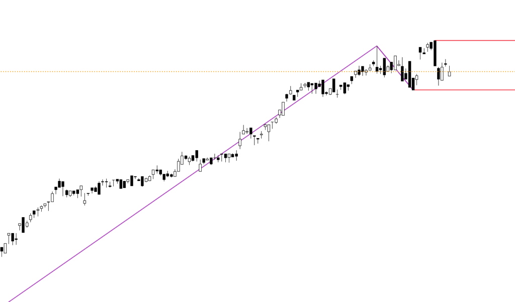 今週のS&P500は、先週末の大陰線の範囲内を上下に動いたまま、週を終えました。