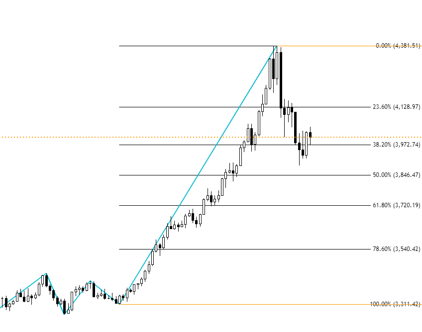 一方、急騰・急落を見せた金(ゴールド)は、今週さらに調整を深めています。急騰の半値水準に届かず陽線を形成していることから、依然として買い圧力が残っている印象です。週足・月足レベルの調整となれば、調整期間が長期化する可能性もありますが、買い圧力が強ければ早期に高値を試す展開も想定しておく必要があるでしょう。
