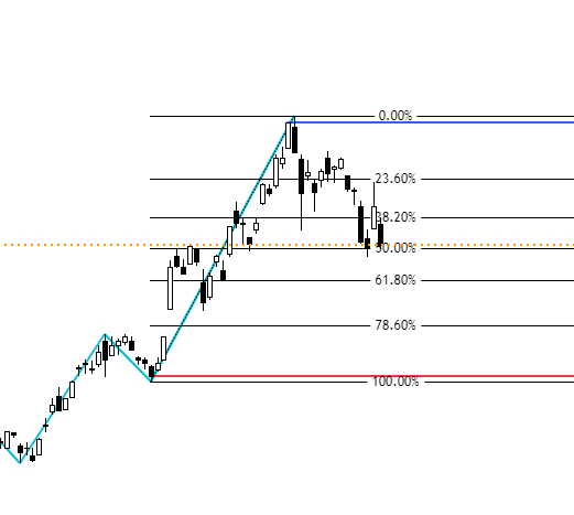 今週は、23.6%と38.2%の間でうろうろしていました。上昇が強かっただけに時間をじっくり使った調整が行われているのでしょうか。