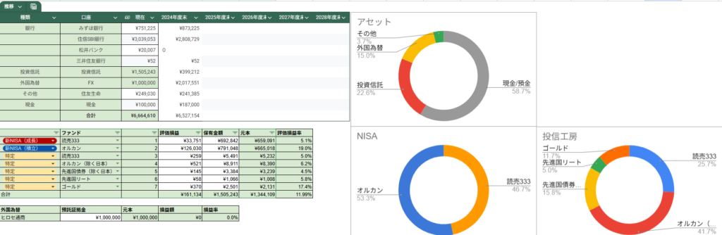 また、月末には銀行口座の預金を含めた資産全体の状況を確認し、投資に偏りすぎていないかをチェックしています。