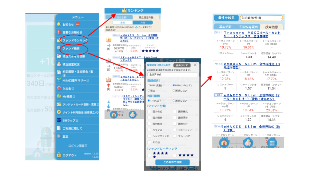 アプリ上では、人気のファンドを簡単にチェックしたり、気になる投資信託を検索することができます。